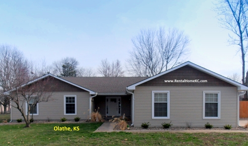 This is a true single-level home with all living space, garages and laundry on the main floor, and a level lot. Open and spacious 3-bedroom 2-bath ranch...with updated flooring, tiled bathrooms and entry way, kitchen and dining room. The large great room features a brick fireplace and sliding doors to the patio. The kitchen has loads of storage and counterspace and eating area...just steps away from the laundry closet. Nice main bedroom suite with private bath. Two additional bedrooms and big hall bath. Unfinished basement for storage and oversize double garage. Fenced yard. Close proximity to Garmin, Olathe Medical Center, nearby schools, park, shopping and restaurants